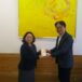 寄付金贈呈の様子(右:秋田うつくしま県人会 代表の大西洋一さん)